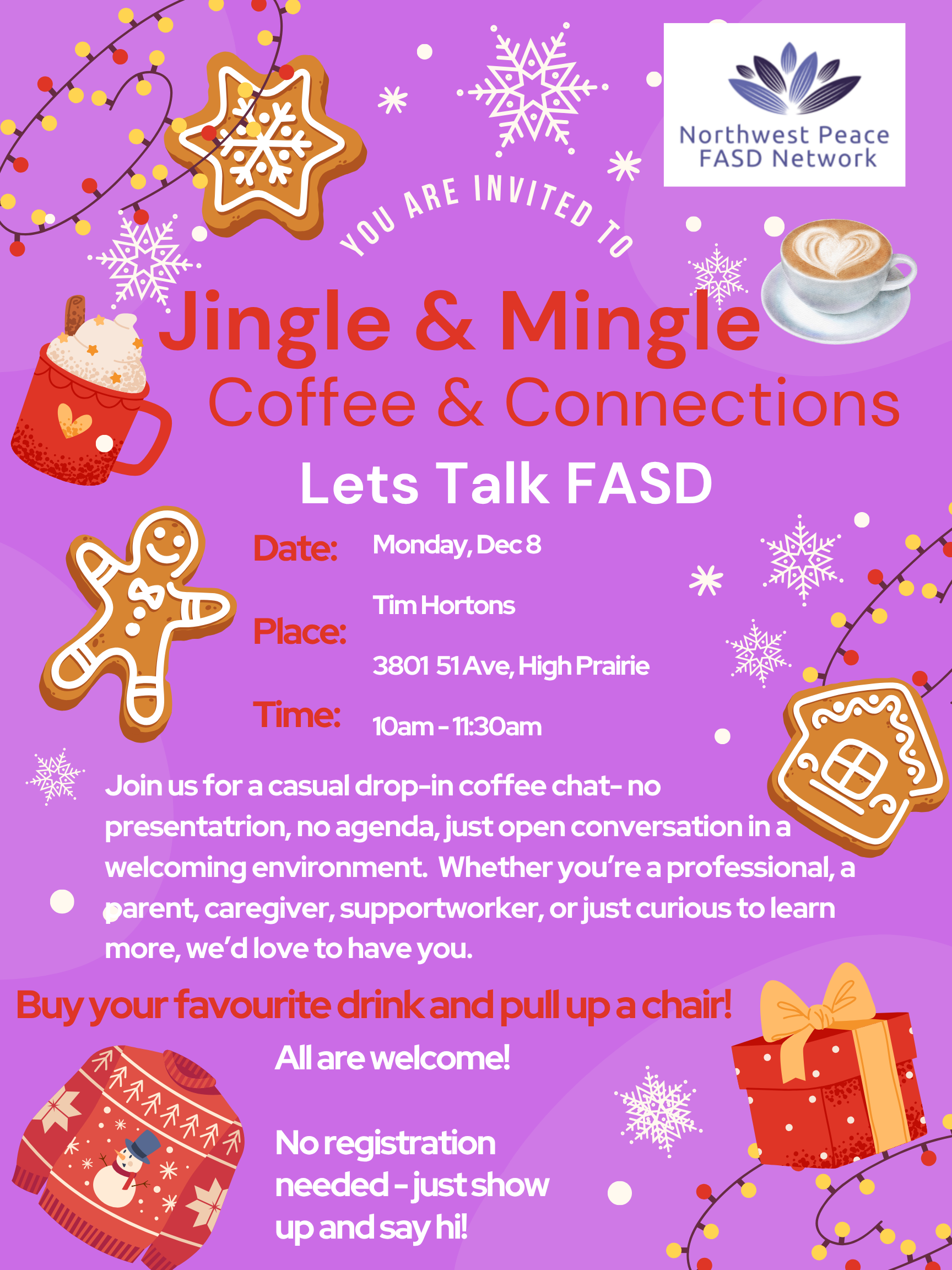 The Northwest Peace FASD Network invites you to join us for a cozy morning filled with coffee, conversation, and Christmas cheer! ![]()