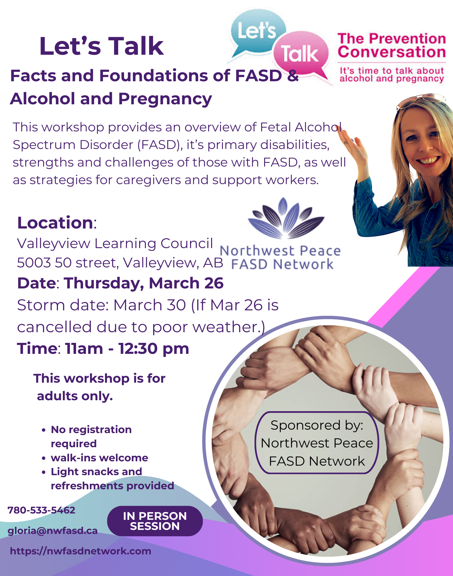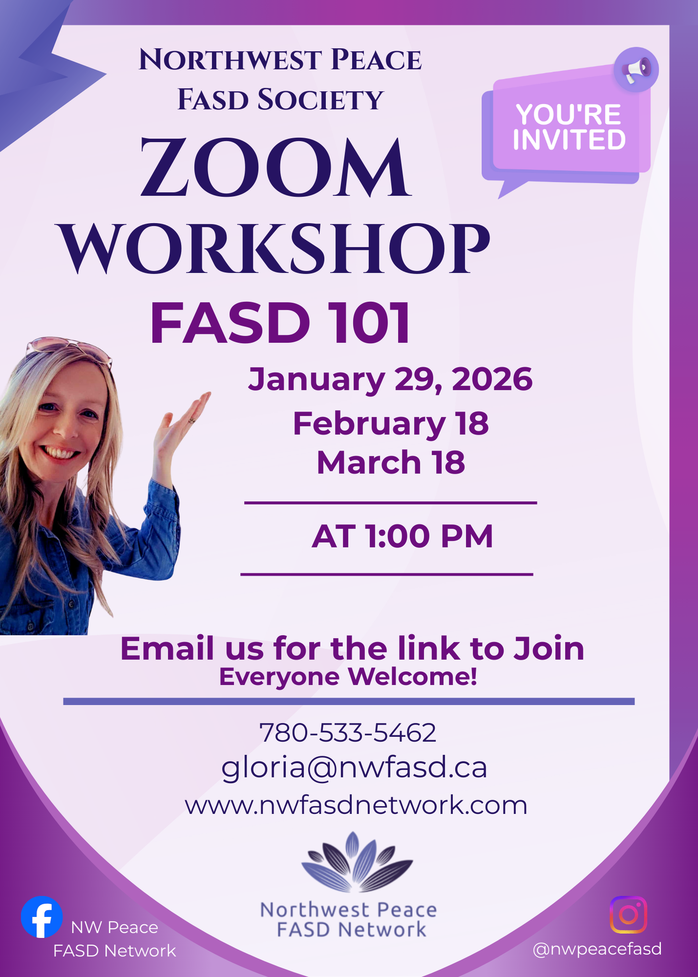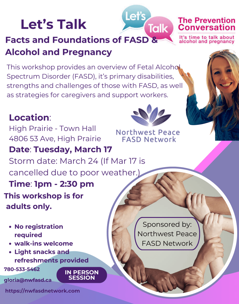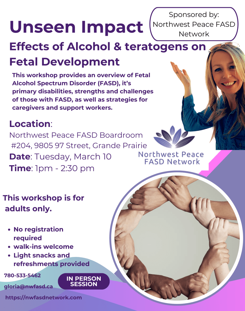 Northwest Peace FASD Network is pleased to offer a series of educational workshops throughout March designed to increase awareness, understanding, and support around Fetal Alcohol Spectrum Disorder (FASD).