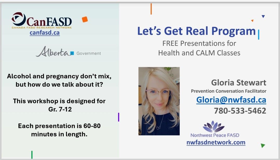 We provide Alberta Government–approved, age- and grade-appropriate presentations designed for Grades 7–12. Our sessions support Health and CALM classes and focus on prevention conversations around alcohol, pregnancy, healthy choices, and relationships — delivered in a respectful, engaging, and youth-friendly way.